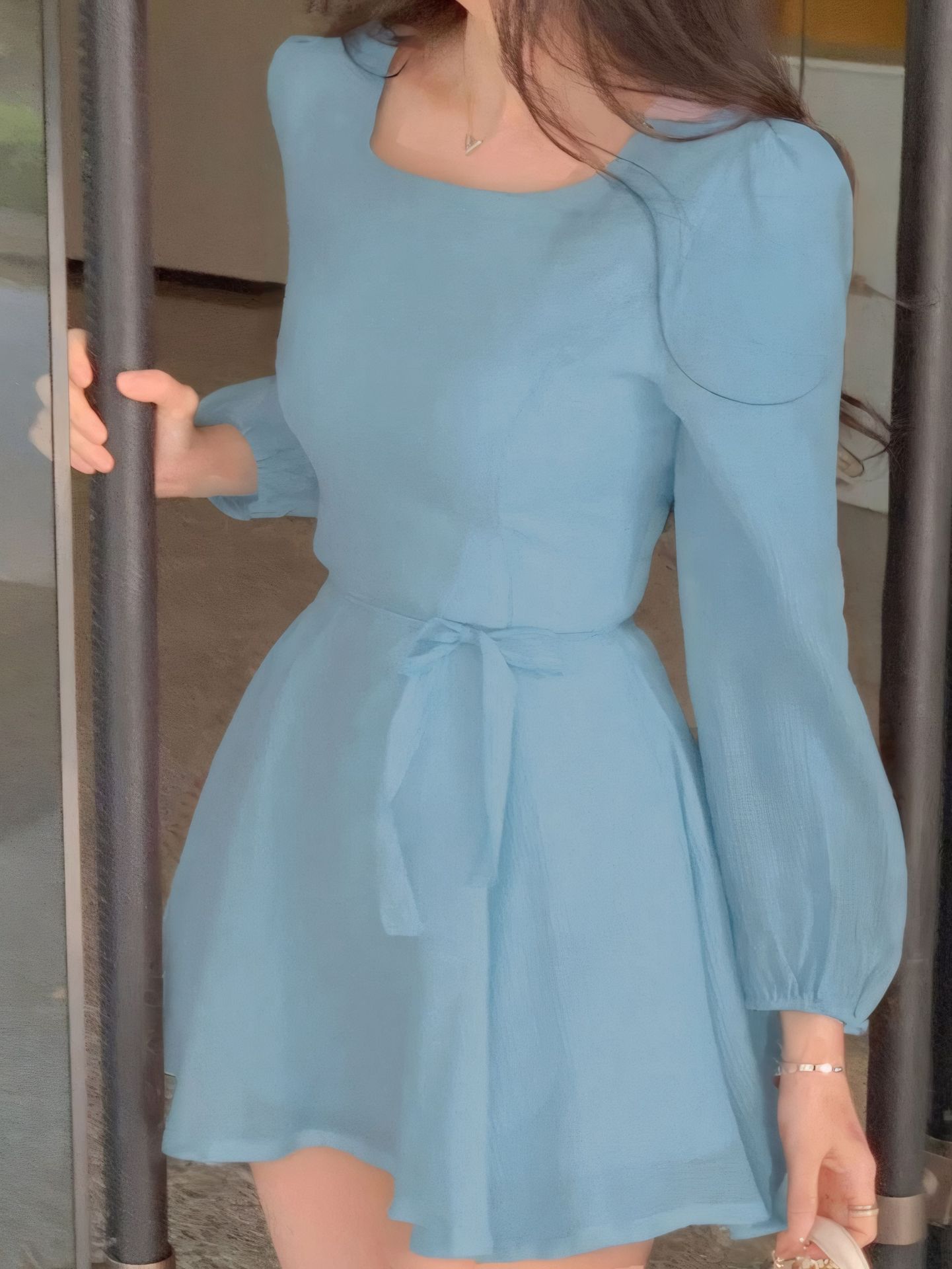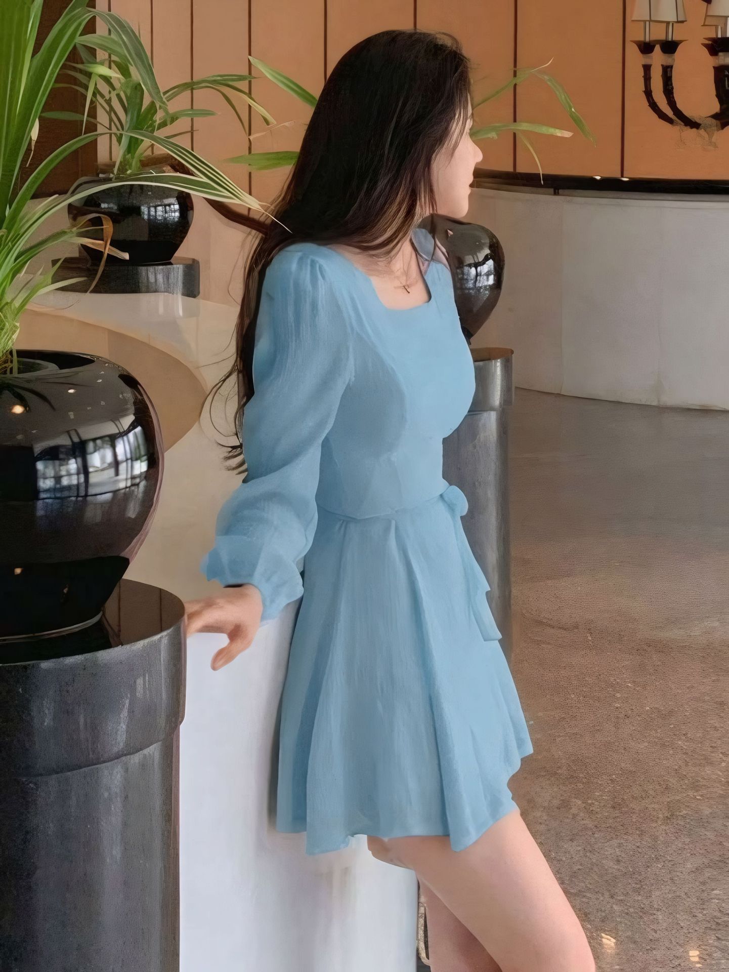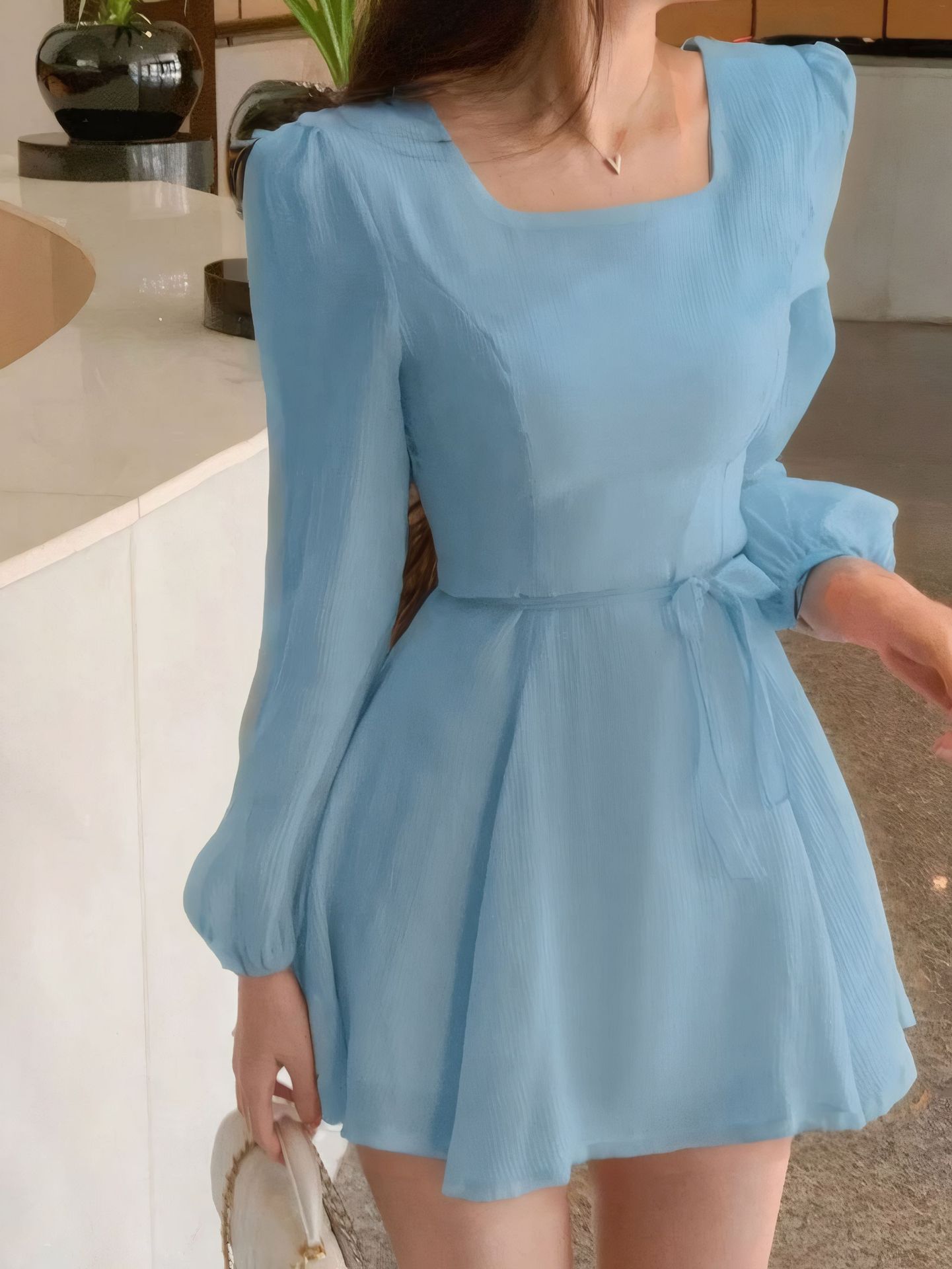 Square-Neck Elegant Korean-Style French-Style Womens Summer High-End Dress