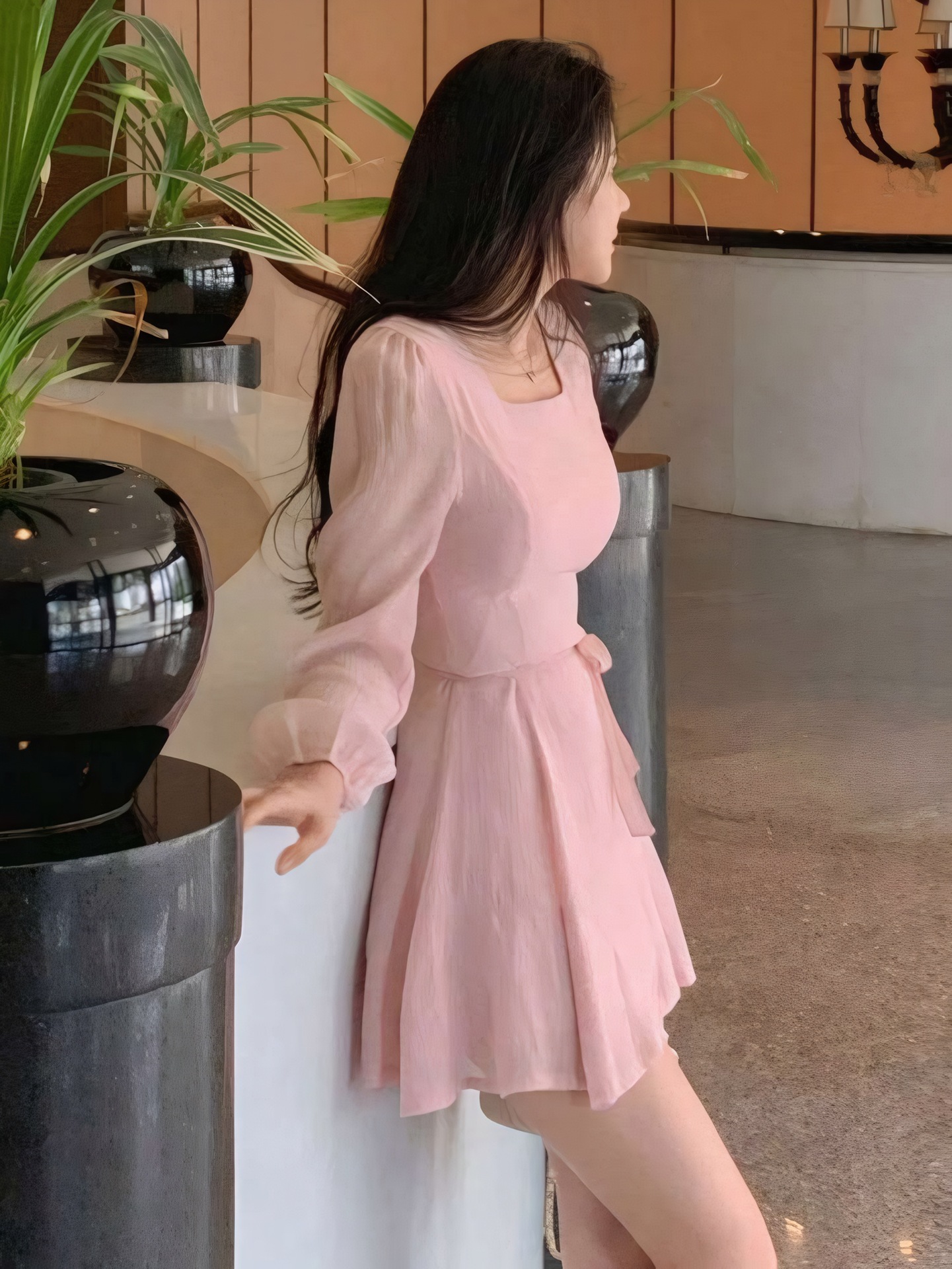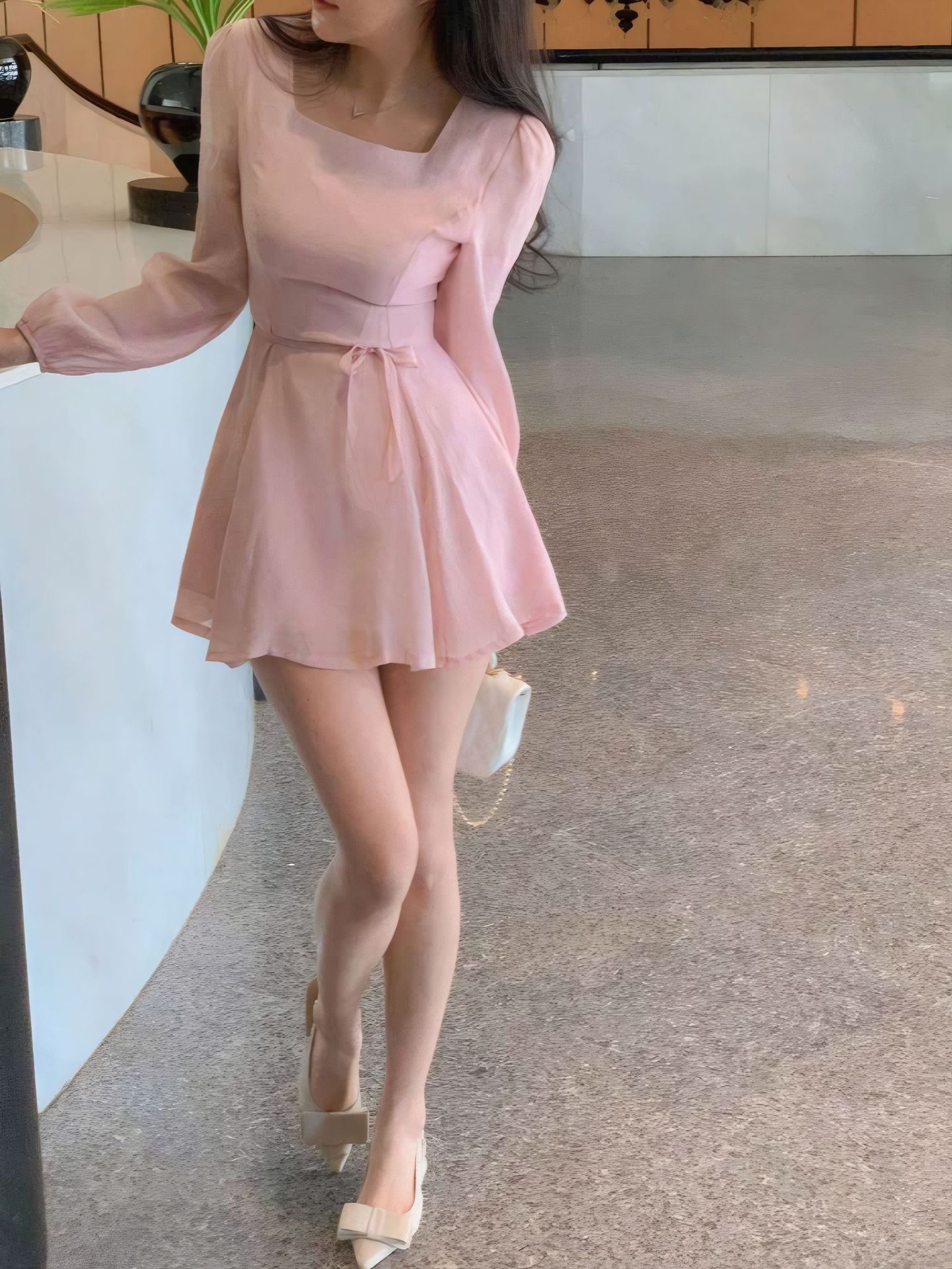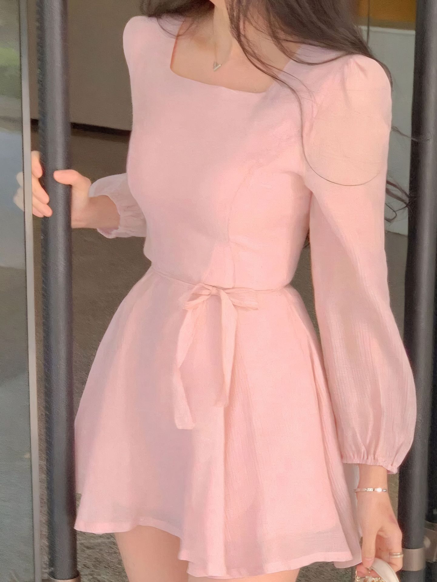 Square-Neck Elegant Korean-Style French-Style Womens Summer High-End Dress